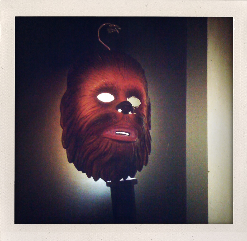 The Chewbaca mask/light (?) is hysterical. I don't know if I would have been able to sleep with him staring at me though.